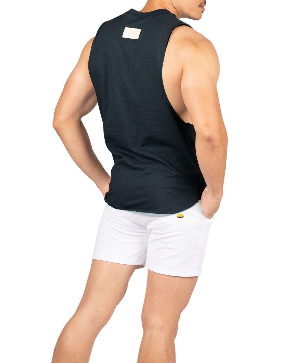 無駄を省いた洗練されたデザイン。大きくあいた脇口がリラックス感を表現します。フロントにはブランドロゴのワンポイント。トレーニングだけでなく普段にもおすすめの1枚です。