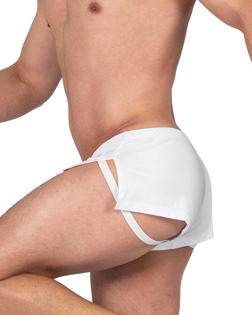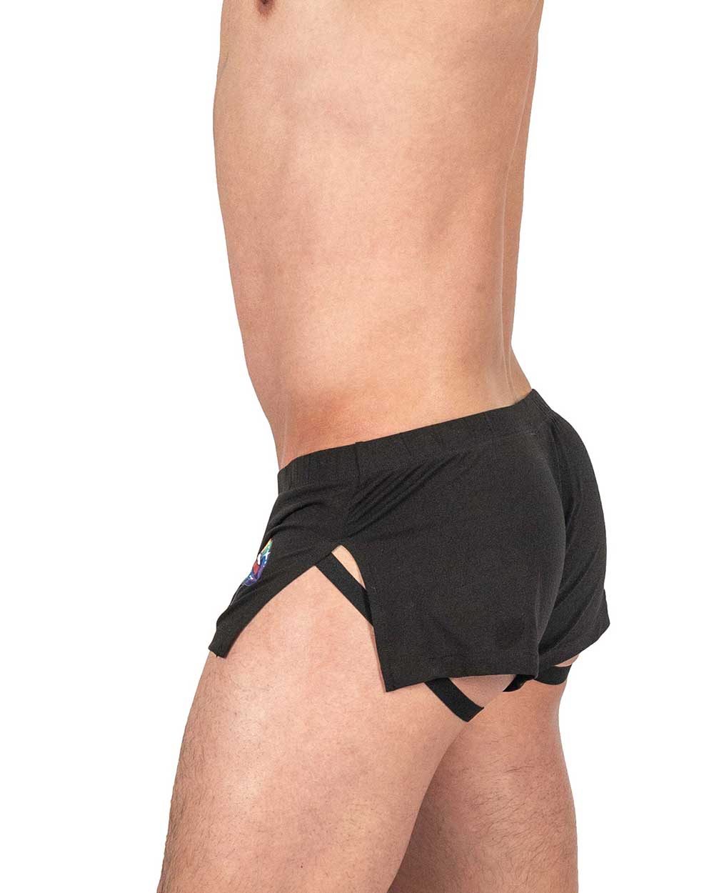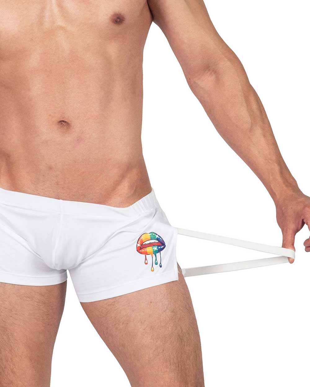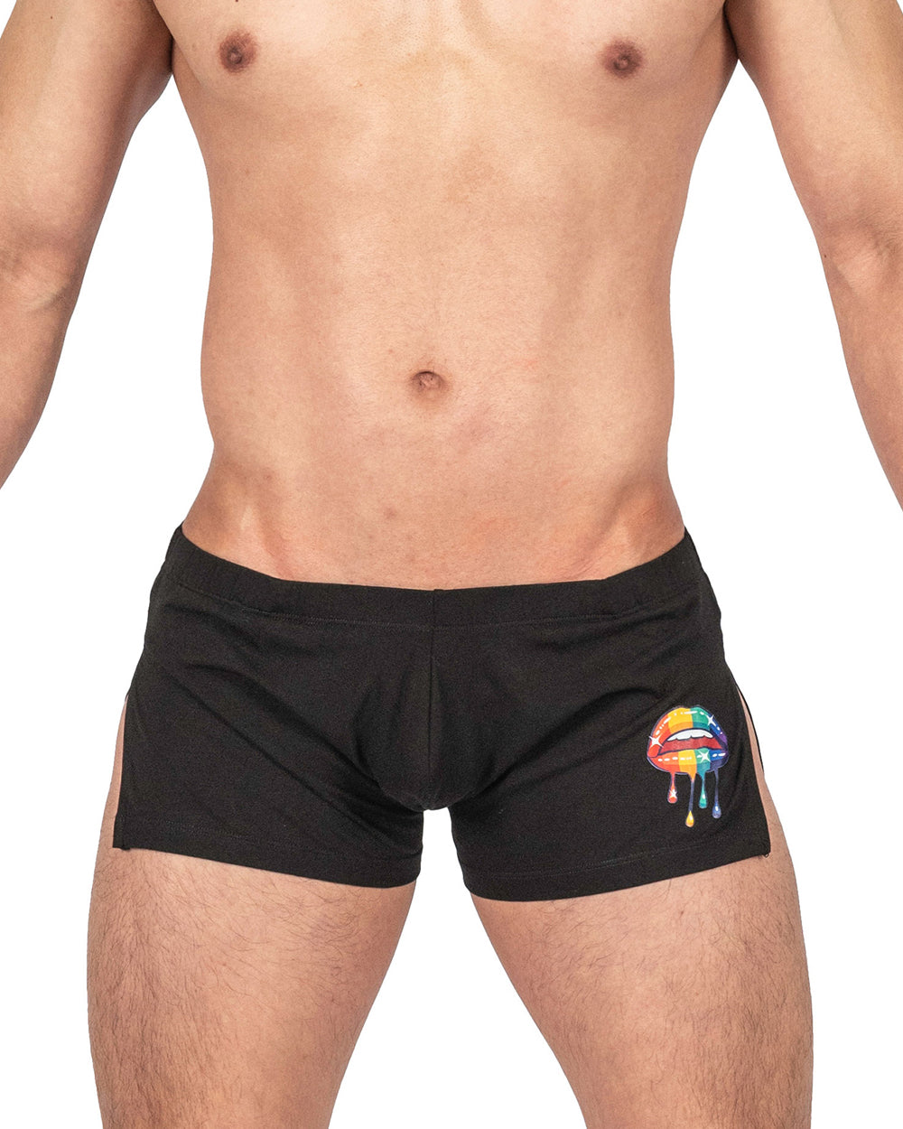 プライベートストラクチャーの限定コレクションLoad My Mouth。オリジナルプリントをとりれたPOPでキャッチーなデザイン。大きくスリットの入った両サイドからはジョックストラップが覗きます。開放的なデザインと相まって蒸れなく快適に着用いただける一枚です。